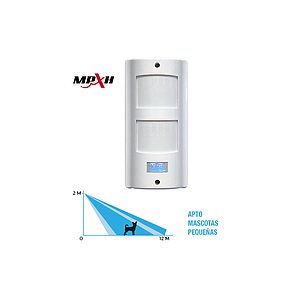 INFRARROJO EXTERIOR MPXH, ANTIMASCOTA CHICA, DOBLE SENSOR, MONTAJE 2 MT